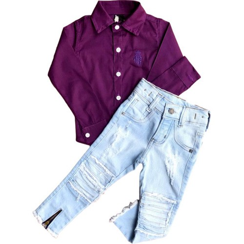 Product Name: Calça jeans com blusa social masculina on sale