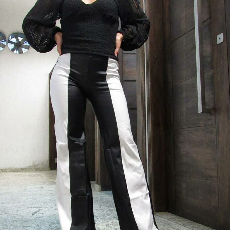 Product Name: Calça flare preta courino on sale