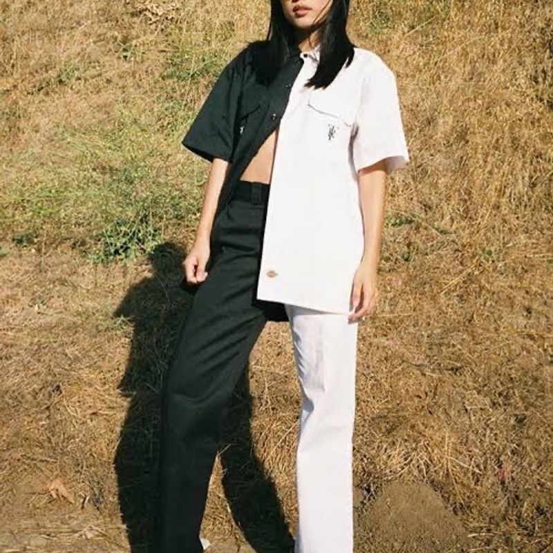 Product Name: Calça bicolor preta e branca on sale