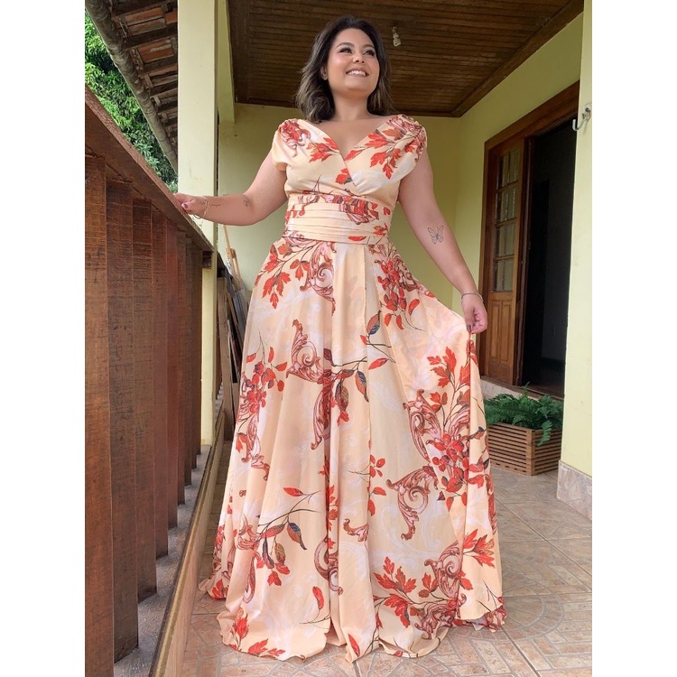 Product Name: Vestido floral para casamento plus size on sale