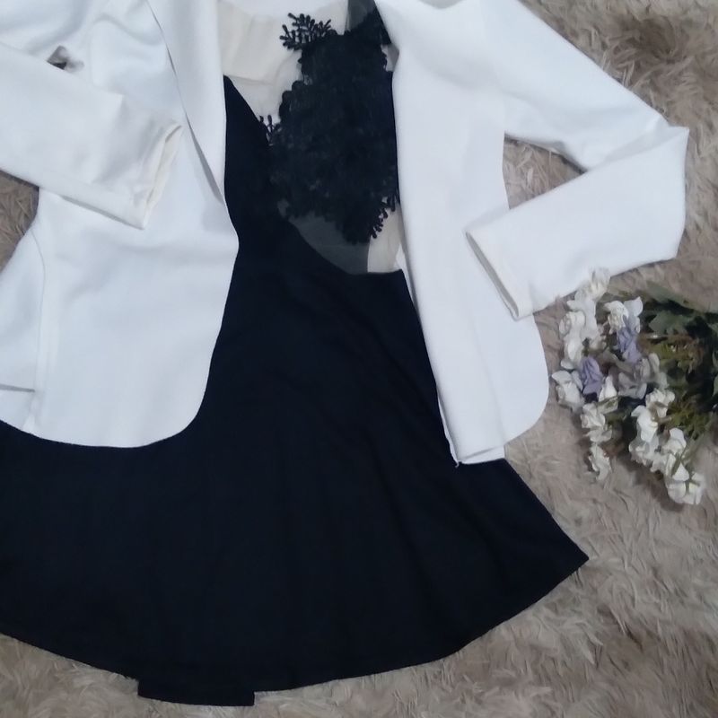 Product Name: Vestido preto e blazer branco on sale