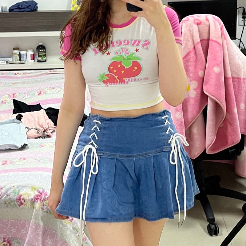 Product Name: Saia jeans com cadarço on sale