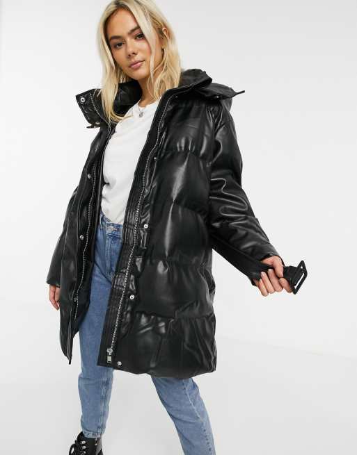 Product Name: Leather look puffer coat on sale