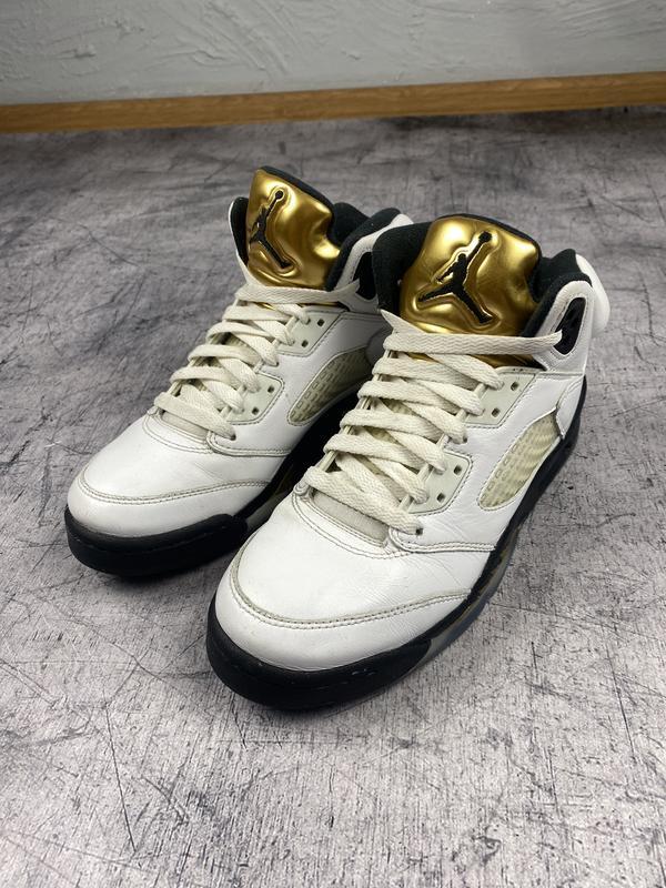 • Nike Air Jordan 5 Retro Olympic Gold Coin BG White Black Gold Sz