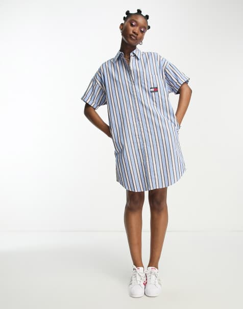 Product Name: Blue white shirt dress on sale