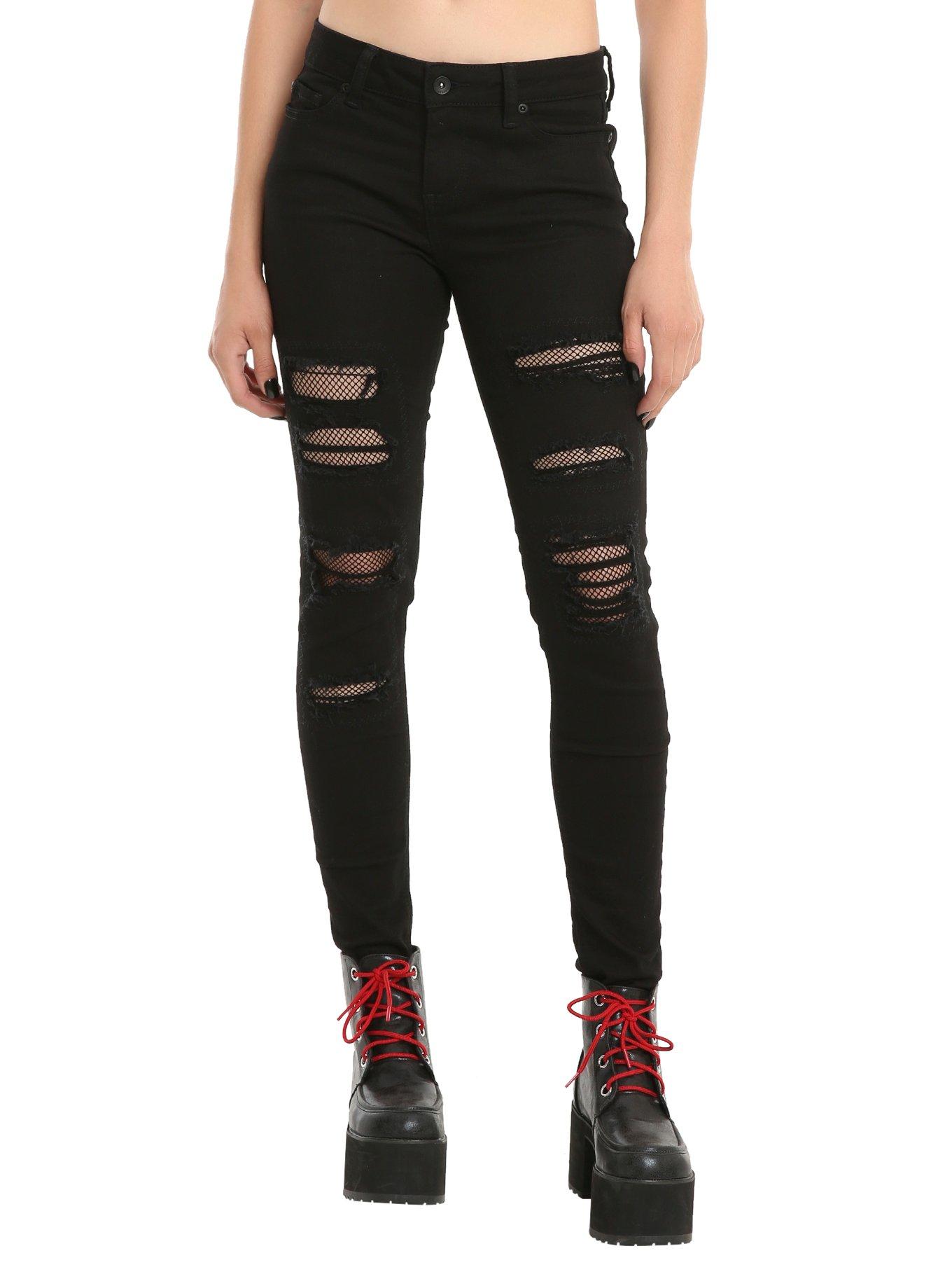 Product Name: Ripped skinny jeans with fishnet on sale