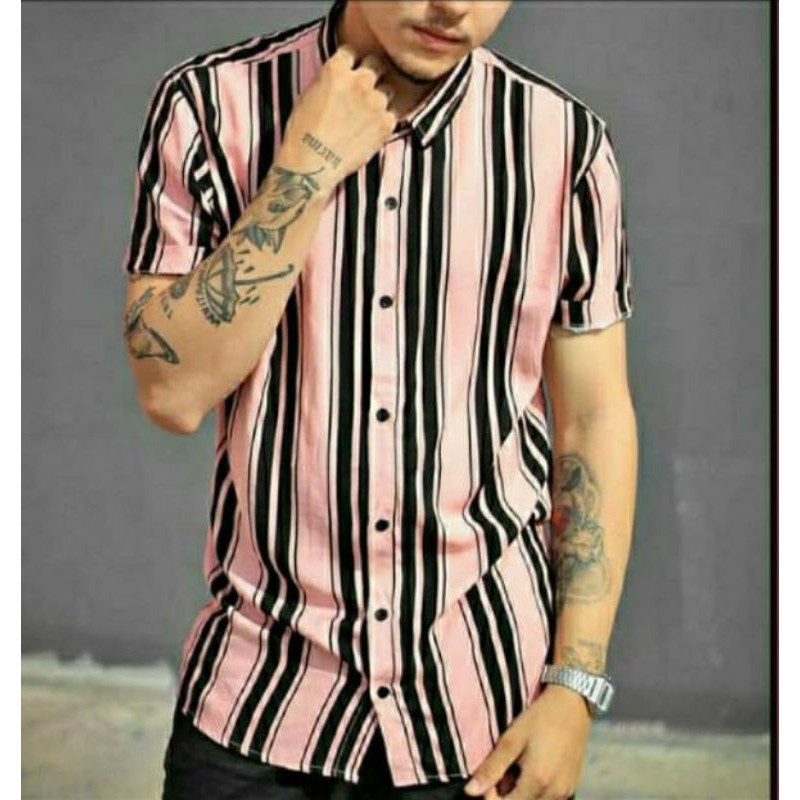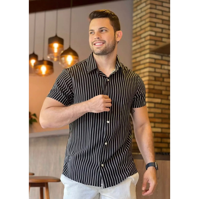 Product Name: Camisa slim listrada em viscose on sale