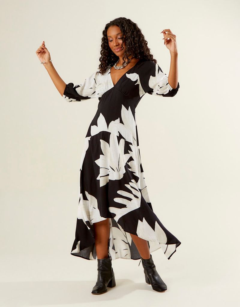 Product Name: Vestido longo preto e branco com fenda on sale